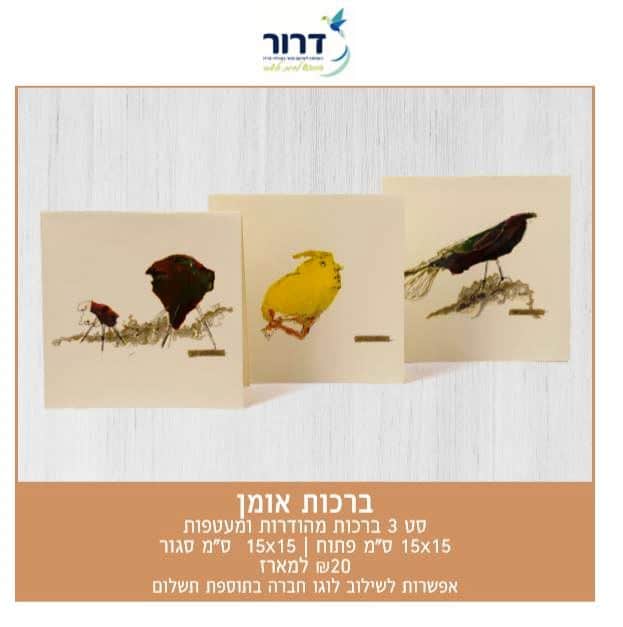יד של אמני בית היוצר של עמותת דרור מציעים לכם לרגוש כרטיסי הברכה אותנטיים, מרשימים והם הרבה יותר מרגשים מהודעת ווסטסאפ או SMS, במיוחד כשמבינים שמעבר לברכה קיימת כאן גם סולידריות חברתית, ערבות הדדית של חברה כלפי מי בתוכה שזקוקים לתמיכה.