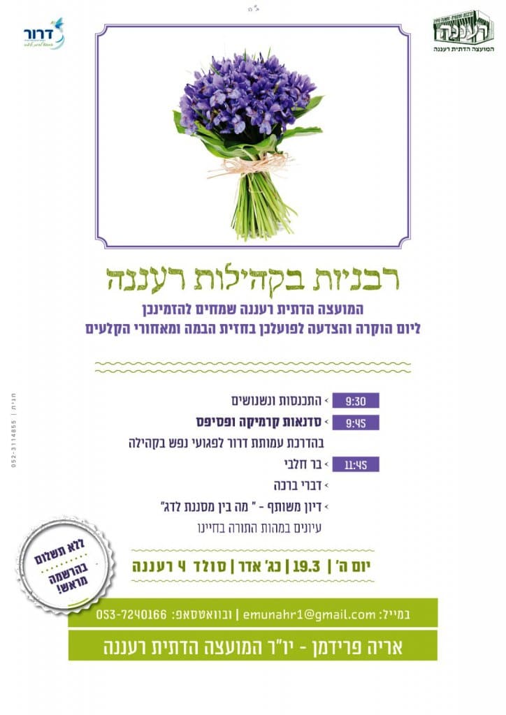 בית מדרש ראשית, קהילת משכן מיכאל, מינהל קהילה בעירייה והמועצה הדתית רעננה מזמינים את הציבור ליום לימוד תורה ביום הבחירות.