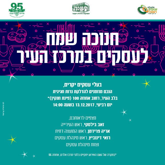 רואי דינוביץ: "מינהלת העסקים רעננה והמועצה הדתית רעננה שמחים להאיר לבתי העסק בלב העיר את חג החנוכה במארז שי חגיגי ומאחלים להם חג אורים שמח ובמיוחד חג של עסקים טובים!"