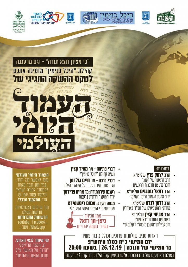 מרעננה תצא תורה! טקס השקה חגיגי למיזם שעשוי לכבוש את עולם היהדות – העמוד היומי העולמי. כמו הדף היומי אבל