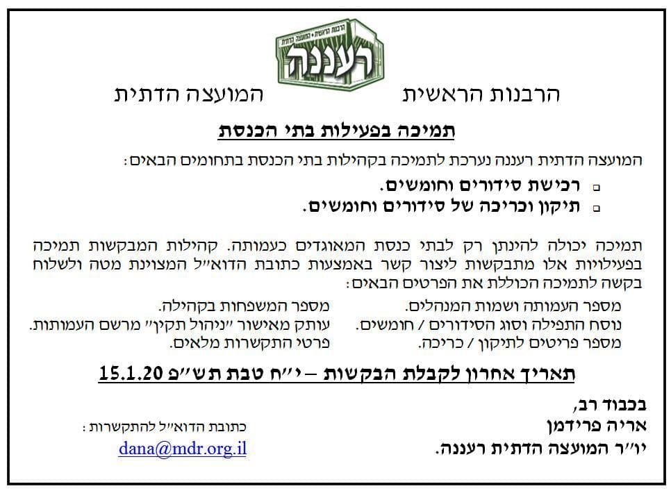 המועצה הדתית רעננה יוצאת ביוזמה חדשה לטובת בתי הכנסת בעיר. רכישת סידורים וחומשים על פי צרכי הקהילה. בידקו אם בית