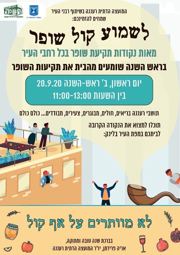 "המועצה הדתית רעננה בשיתוף רבני העיר שמחים להזמינכם לקחת חלק בפרויקט חשוב של הנגשת קול השופר לכל תושבי רעננה.